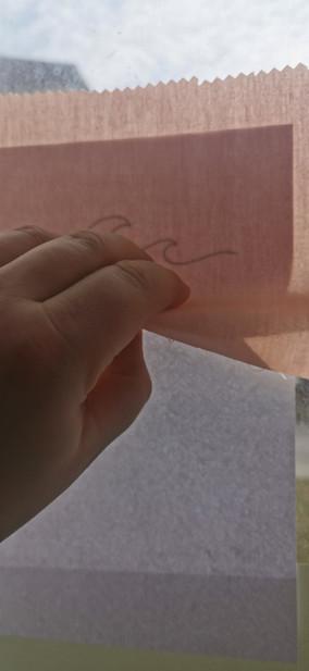 The prick and pounce is one of the older methods of transferring designs. Tracing paper or transparent plastic film can be used. Roughly speaking, it's about first tracing the motif onto the tracing paper. Then we take a thicker needle and make holes along the line of the motif (on the plastic or tracing paper). We place the perforated paper on the chosen place where we want to embroider. Then we use a pen to make dots through the holes. We check while making these dots, whether we are marking strongly enough. When the design is completely transferred, the tracing paper is removed and the drawing can be added onto by connecting the dots.