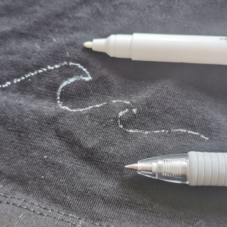 In any chosen method, I recommend first testing how the ink with which we want to mark will react to water/rubbing/use of heat. Before you start drawing, think about how the item will be used (will it hang on the wall for years untouched or will it be washed every week). Think about what color the base is and what color the thread will be. Contrasting pen colors can be seen very well, but it would be a shame if the residue of the pen remained in the embroidery threads after washing.